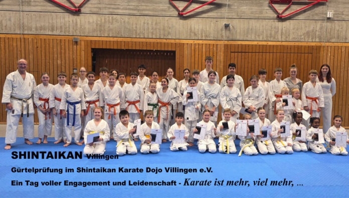 42 Karatekas unterzogen sich im Shintaikan Karate Dojo Villingen eine 3½-stündigen Gürtelprüfung. Die Trainerinnen Medea Curcio und Kim Höfer begleiteten ihre Schützlinge, während die Prüfer Damiano Curcio und Johann Höfer die Nachwuchsarbeit lobten und dem Nachwuchs weitere Impulse hinzugaben. Die Prüflinge zeigten neben Grundschule und Partnerübungen auch verschiedene Kata je nach Gürtelgrad. Im Kumite steigerten sich die Anforderungen bis zum Freikampf gegen vier Gegner in einer Minute. Am Ende beeindruckte die Mittelstufe mit der Ursprungskata „Taikyoku Shodan“.