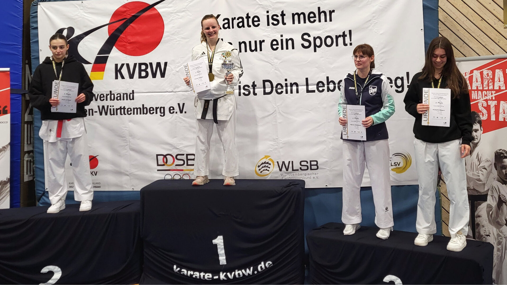 Shintaikan Villingen zeigte bei den Baden-Württembergischen Landesmeisterschaften der Leistungsklasse, Masterklasse und Teams herausragende Leistungen. Die diesjährigen Meisterschaften wurden in Ludwigsburg ausgetragen. Der Nachwuchs aus Villingen bereitete sich gezielt auf die neuen Wettkampfregeln vor und erzielte überzeugende Ergebnisse. Coach Damiano Curcio äußerte sich sehr zufrieden mit dem Ergebnis seiner Athleten. In allen drei Kumite-Kategorien – Leistungsklasse, Masterklasse und Teamwettbewerb – wurden Podestplätze erreicht. Uwe Rehnert gewann Gold in der Kategorie Master Ü 55 bis 80 kg. Mia Will holte mit der Kampfgemeinschaft Böblingen/Villingen ebenfalls eine Goldmedaille. Das jüngste Villinger Team, bestehend aus Saron Kfeleng, Melina Pena Kalpaktsi und Lera Schellenberg, erreichte Silber in der Kategorie Schüler B Mädchen. Tuana-Pelin Sendag sicherte sich eine Bronzemedaille in der Leistungsklasse Damen bis 61 kg und brachte damit eine weitere Medaille ins Villinger Karate-Dojo.